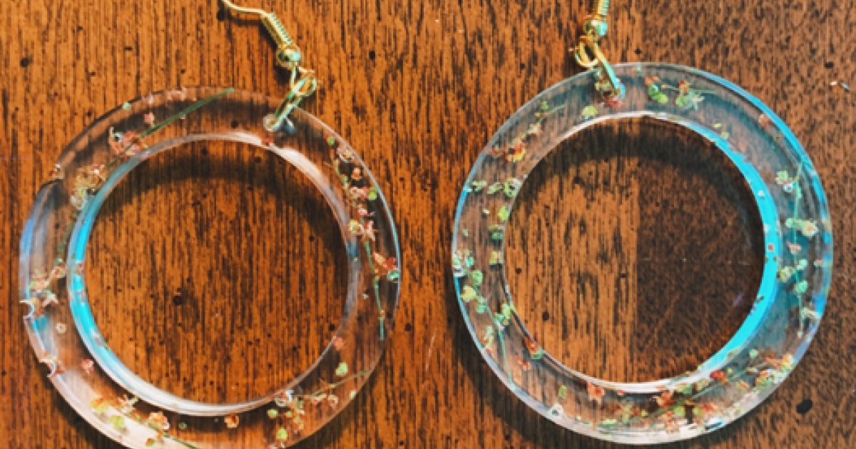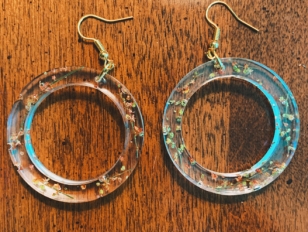Pictured top: Earrings, resin and metal, by Mackenzie Moyer