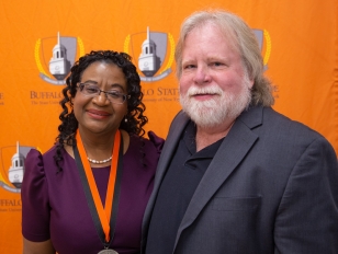 He joined the Buffalo State College Foundation Board of Directors in 2011, serving on the Finance and Audit Committee, as treasurer, and as chairman of the board for three years. He employed his considerable bridge-building skills to connect the foundation with business leaders and not-for-profit organizations throughout Western New York. He and his wife, Madonna, ’80, served as co-chairs of one of the annual Bengala Foundation Scholarship Gala in 2021. They were also instrumental in formulating the GRIT Scholarship Fund in 2021 to financially support students at Buffalo State.
