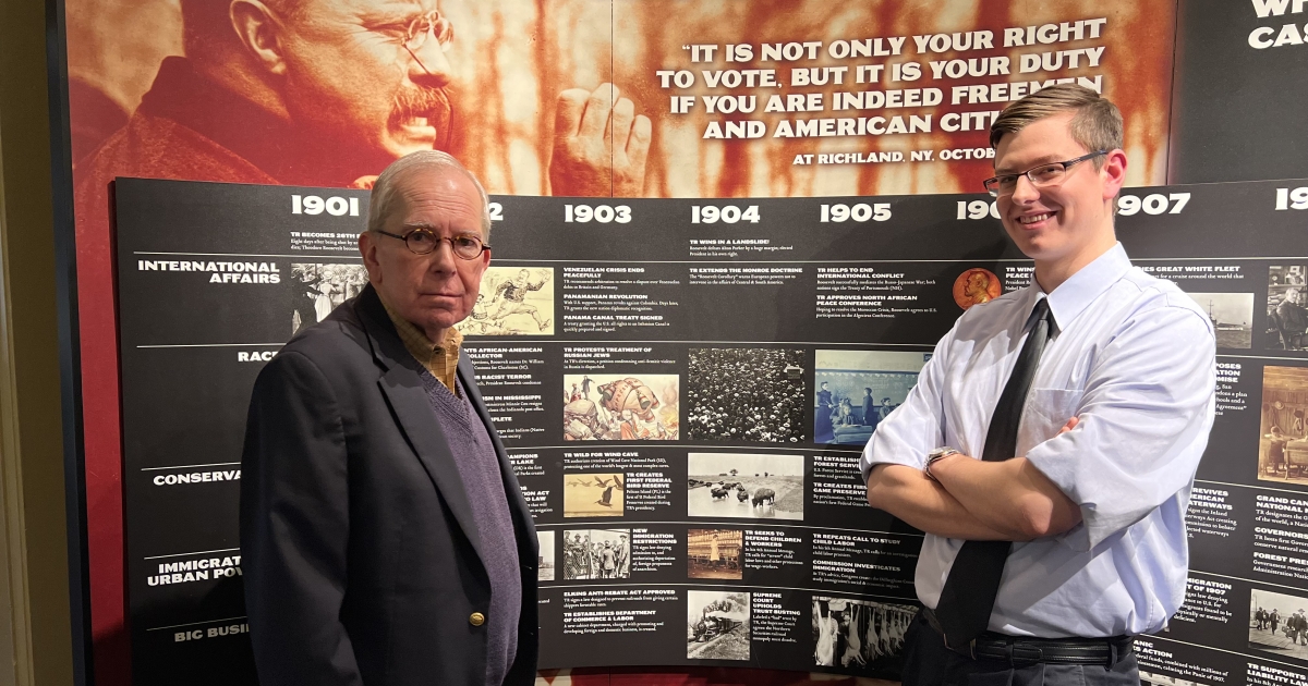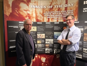 Stanton Hudson (left), former executive director of the TR Inaugural Site, and Buffalo State graduate student Jacob Riedel.