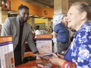 The day began at 8:00 a.m. with breakfast in the Campbell Student Union Social Hall and opening remarks from Randyll P. Bowen, Buffalo State’s vice president for enrollment management, and Nick Wockasen, admissions advisor at SUNY Delhi and president of the State University of New York College Admissions Professionals (SUNYCAP). Attendees then joined workshops on topics including transitioning from education to career, empowering student success, the ASAP and ACE programs, pathways to teaching, admissions in a post-COVID world, and understanding the SUNY system. They also participated in a professional meet and greet, listened to presentations on Buffalo State’s educational leadership and financial aid services, and took campus tours.