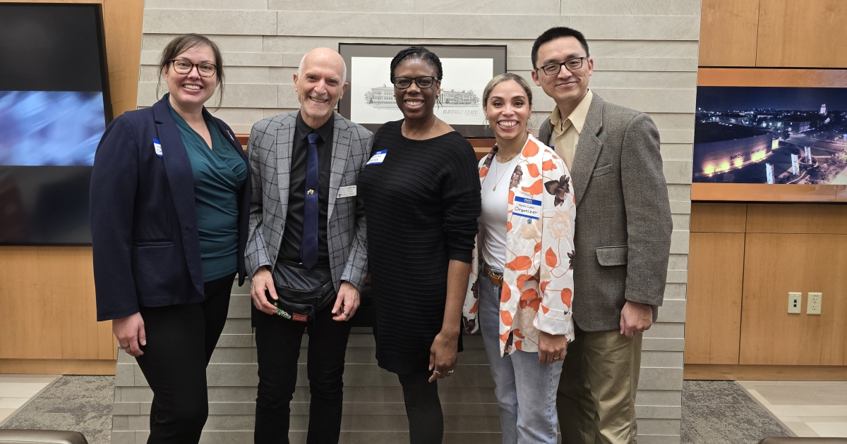 The event was organized by Joaquin Carbonara, professor of mathematics, lead faculty in the data science and analytics M.S., and associate director of data science for the Center for Integrated Studies in Nanoscience and Nanotechnology; Angela Thering, lecturer in the Higher Education Administration and Adult Education Department; Naila Ansari Catilo, assistant professor of theater and Africana Studies; and Zhen Liu, lecturer of data science and analytics; reflecting Buffalo State’s multidisciplinary effort to engage the campus community and broader Buffalo region in critical conversations about the future of AI in society.