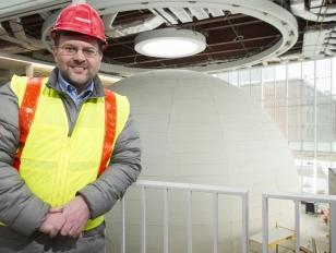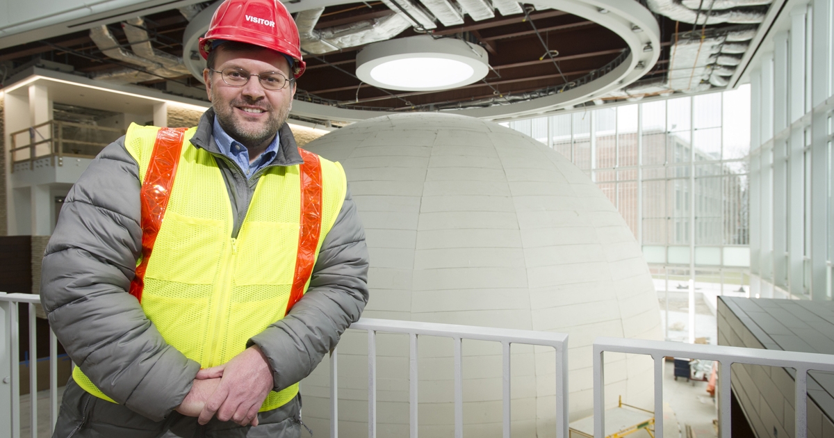 About the Whitworth Ferguson PlanetariumBuffalo State’s Whitworth Ferguson Planetarium, a 43-foot spherical facility (pictured under construction), is the main focal point of Phase 4 of the Science and Mathematics Complex construction project—a $23 million final addition that will connect the complex’s main entrance and lobby to the three-story atrium. This is the final phase in the renovation and expansion of the Buffalo State Science Building that began with the demolition of the vacant south wing in June 2018.