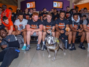 He rounded out his visit with “paw art therapy” with students in the lobby of the union and a visit to the campus’s Whitworth Ferguson Planetarium.