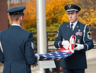 The United States Air Force Honor Guard of the 914th Air Refueling Wing from the Niagara Falls Air Reserve Station will conduct a flag-folding ceremony, Buffalo State music major Jenna Agro will perform a rendition of “God Bless America,” and students from the Music Department will perform taps. A reception will follow in Campbell Student Union 419.