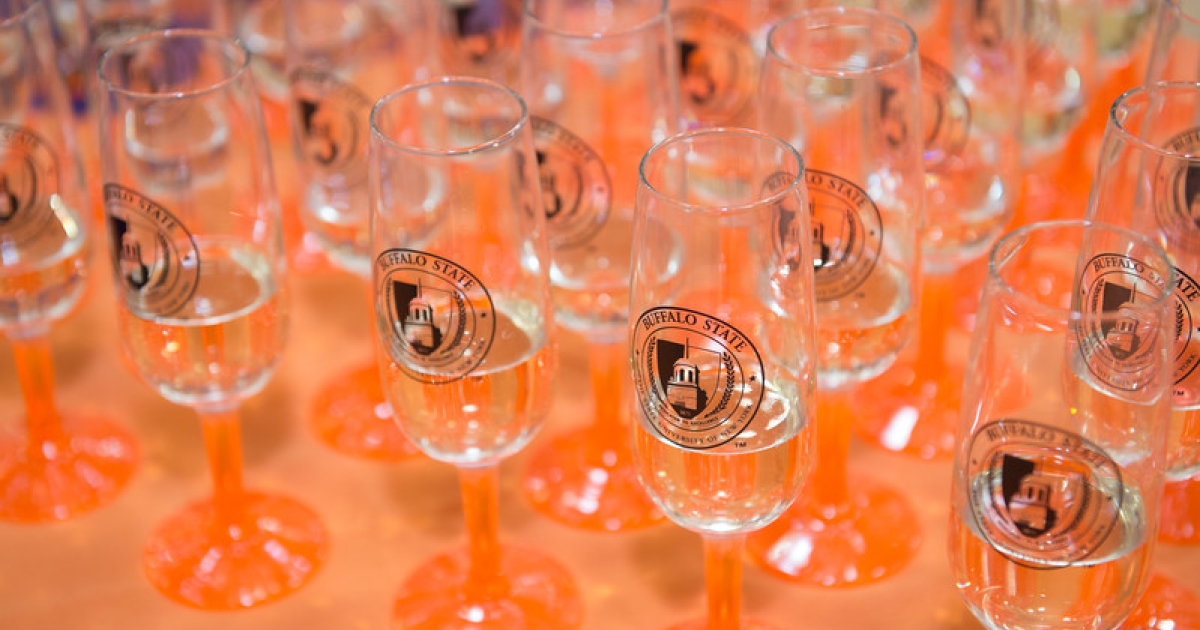 Students in attendance will take part in trivia games and receive free T-shirts emblazoned with Buffalo State’s new name. Hundreds of orange, black, and white balloons will drop to culminate the festivities.