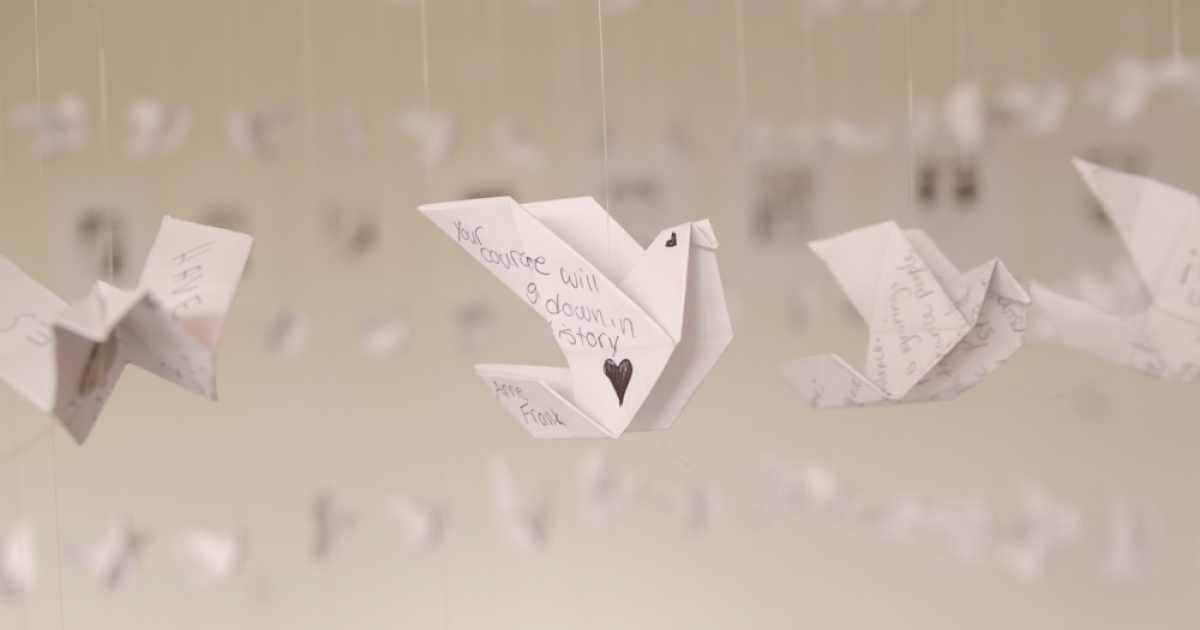 Pictured top: Installation by artist Ben Perone, from the 2012 Anne Frank Social Justice Festival at Buffalo State College