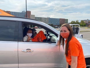 Over 500 students took advantage of the commuter welcome drive-through in Lot G-22, with lines of cars extending out to Grant Street at times during the event.