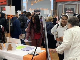 More than 400 Buffalo State students explored their academic and career options during a campuswide Major and Minor Fair on Thursday, October 26, in the Campbell Student Union Social Hall. Forty-three departments and interdisciplinary units representing more than 200 major, minor, and certificate programs took part in the fair, which was designed to help students learn more about Buffalo State’s vast curricular offerings by speaking with faculty members and students enrolled in programs.