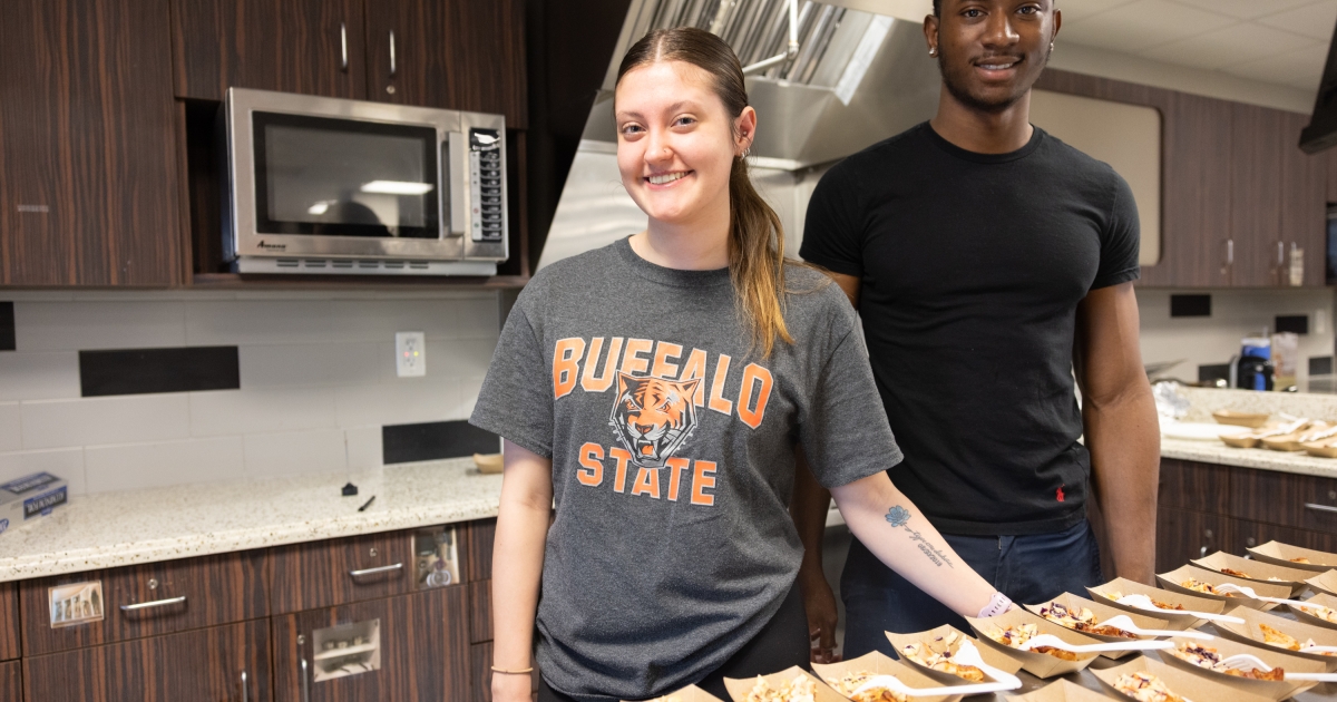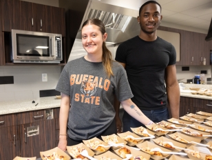 Three groups of Buffalo State students prepared traditional American dishes while guest chefs from Journey’s End prepared signature dishes from their home countries. Attendees experienced a vibrant array of flavors by sampling dishes from around the world, experiencing firsthand how culinary traditions bridge cultural differences.