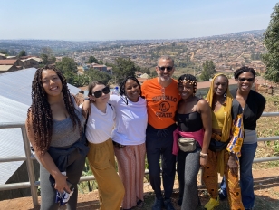 The Rwanda trip was put on hiatus for the past two years because of the coronavirus pandemic. This year, Kahn said, they decided to make it primarily a professional development trip. Along with Wall, the delegation included three recently hired AFP staff members—Jonise Hall, ’20; Gabriella McKinley, ’21; and Roselynn Corrado, ’20—and two other alumni, Zhanna Reed, ’19, and Amanda Rojo, ’16, who were both involved with the Anne Frank Project as undergraduates. Rojo, now a graduate student at the University at Buffalo, is Wall’s daughter.