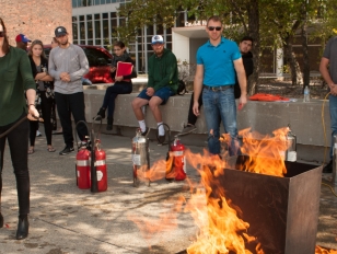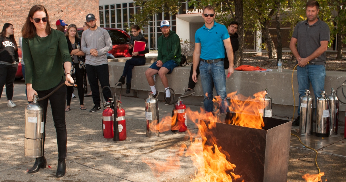 Regular fire drills and inspections reinforce the dos and don’ts of safety and emergency procedures, as well as ensure the working order of all safety equipment. Resident assistants also receive fire prevention training, which includes learning how to evacuate a building and operate a fire extinguisher, and role-playing an actual fire. Representatives from the New York State Office of Fire Prevention and Control and members of the Buffalo Fire Department assist in this training, Cox said.