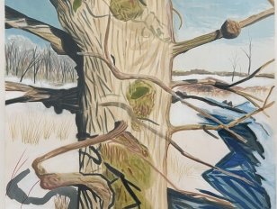 Jemison has two other crow paintings in the collection. In 1952, Burchfield created a lithography on paper featuring a crow in flight, titled Crows in March, which Weekly placed between two of Jemison’s crow paintings.