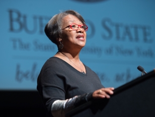 On a bright note, she emphasized Buffalo State’s longtime commitment to social justice, which is now being enhanced. This includes launching a social justice website, increasing the campus’s connection with external community partners, and assessing how the curriculum can deepen students’ exposure to and understanding of social justice both historically and in its present manifestations.