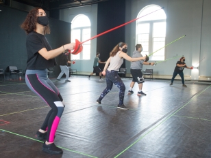 Pictured top: Students rehearsing in Adriano Gatto's Stage Combat II class.