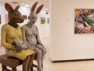 Art and Design faculty members identified the alumni to include in the exhibit and invited them to submit their work. They curated the exhibit in conjunction with the Exhibition Committee, which is made up of rotating faculty members who are responsible for all exhibitions and activities in the gallery.